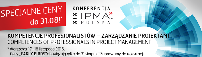 Rejestracja na konferencję została rozpoczęta. Tylko do 31 sierpnia obowiązują ceny "early birds"! - http://www.konferencja.ipma.pl/